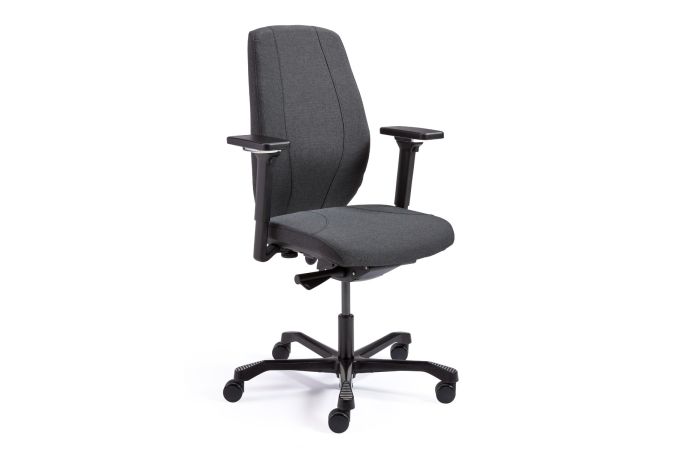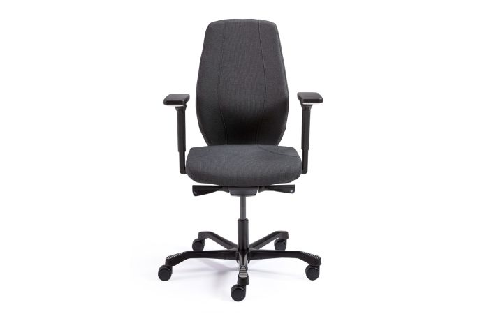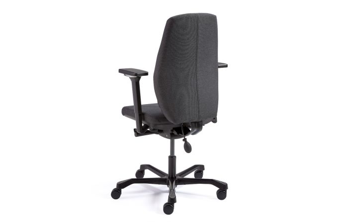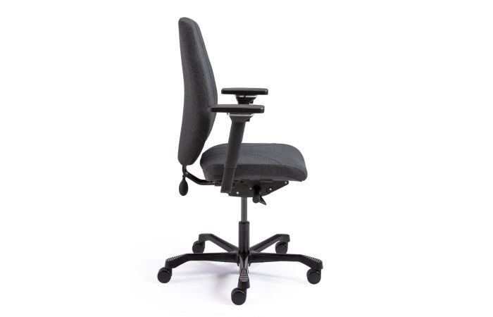Zwart metalen voetkruis met zachte 60mm wielen (voor alle vloeren) - Ergonomische bureaustoel volgens NPR 1813 - Uitgevoerd met een fantastisch lopend autoweight synchroonmechanisme - In 4 posities te blokkeren met terugslagbeveiliging - Diepte instelling d.m.v. 10cm schuifzitting - Lichaamsgewicht fijnafstelling d.m.v. draaiknop onder mechaniek - 4D verstelbare armleggers met PU top - Zitting en rug van hoogwaardige CFK-vrije koudschuim - Rugleuning in hoogte te verstellen - Lendensteun met opblaasbare diepteverstelling - Gestoffeerd in Gabriel Medley 6099 (75.000 Martindale)